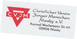 Unser CVJM in Niesky hat 17 Mitglieder und wurde am 16. Juni 1991 gegründet. Wir treffen uns jährlich zu einer Familienfreizeit und halten Kontakt untereinander. Unsere Mitglieder engagieren sich zudem in ihren Kirchengemeinden und in der überörtlichen christlichen Jugendarbeit. Der Vereinsvorstand verantwortet die Arbeit des Schülerclubs mit den zwei in Teilzeit beschäftigten Mitarbeiterinnen. Aus der Gemeinschaft im Verein erwächst Freude an der Arbeit und gegenseitige Unterstützung, den Glauben im Alltag zu leben.